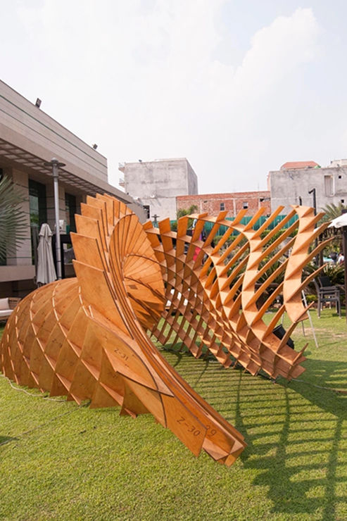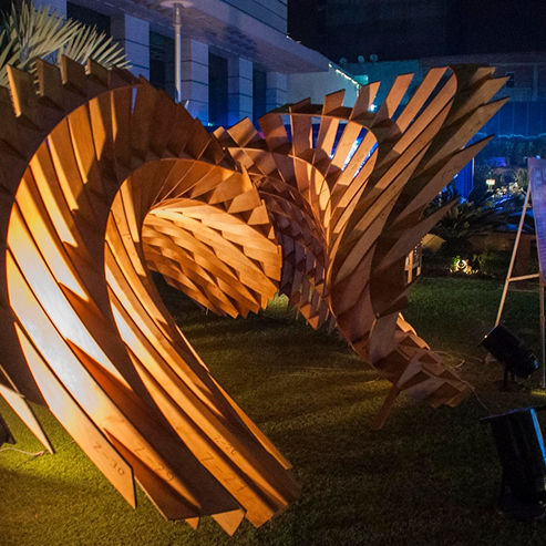 Designed for The Design Forum, Wooden Cocoon carves space through movement, shifting the experience from observation to participation. Form, depth, and tension converge to create a structure that demands attention.